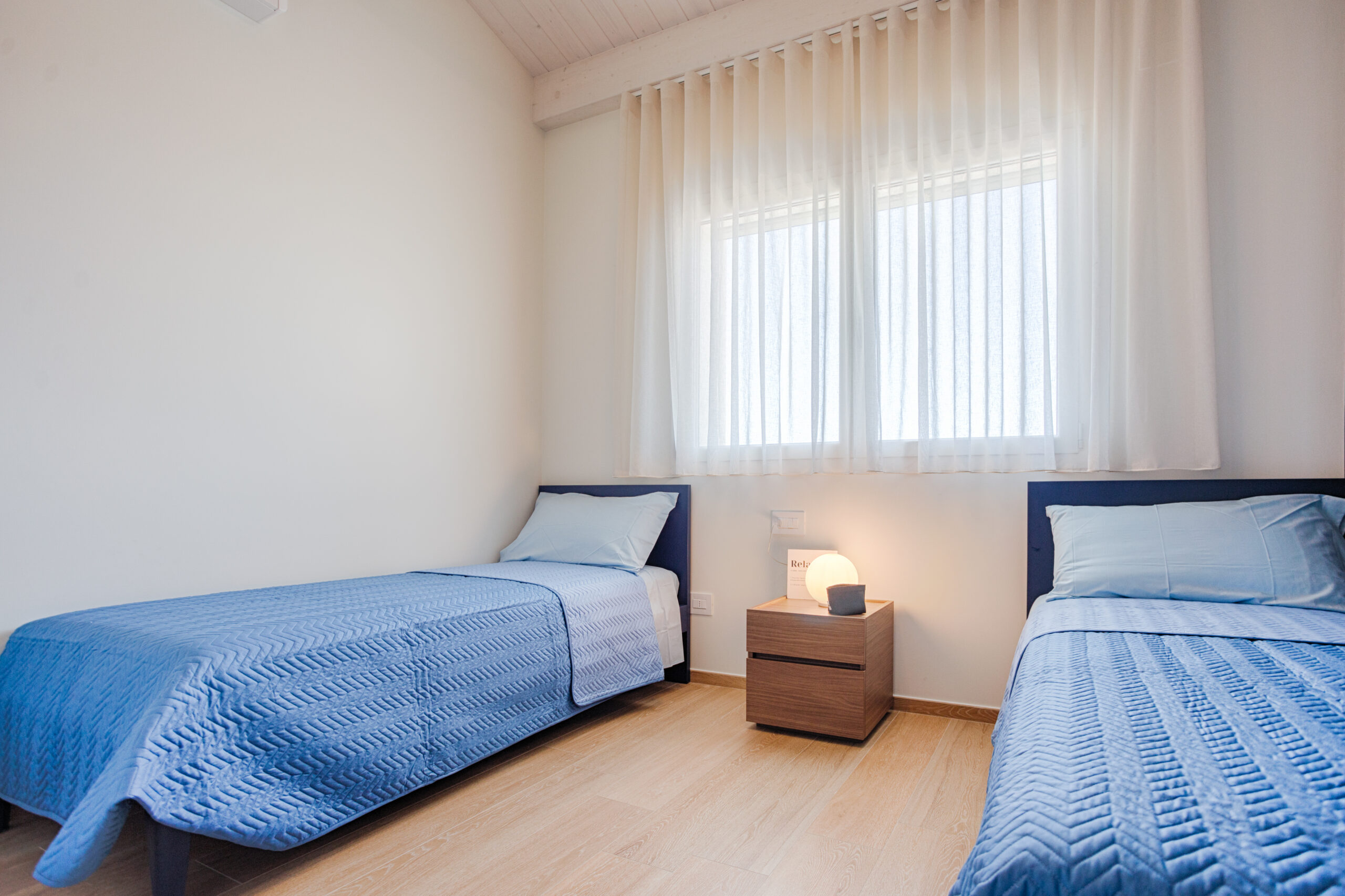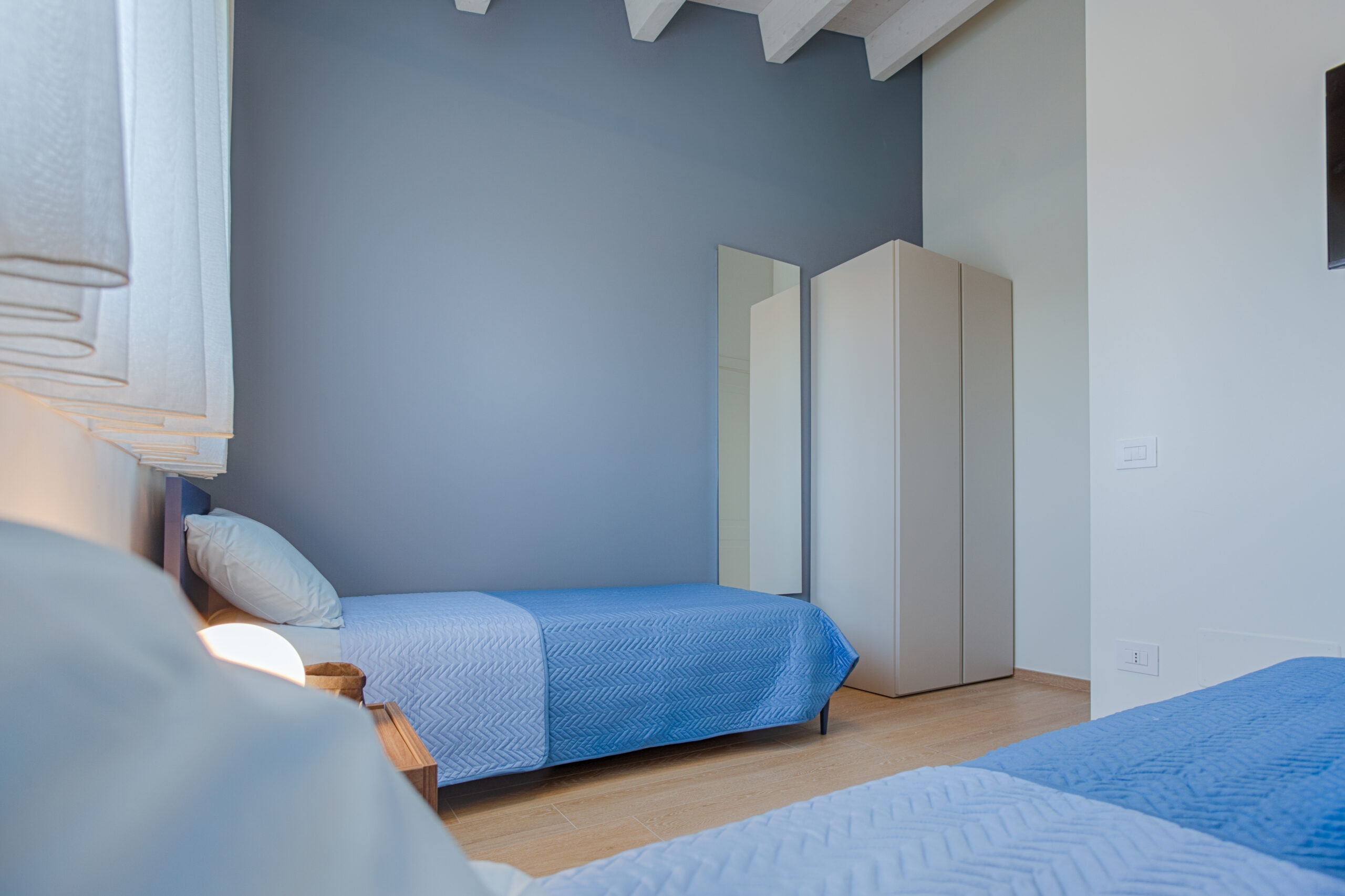 La camera matrimoniale, con bagno privato, offre uno spazio di lusso e comfort dove potrete ritirarvi per una notte di sonno ristoratore. Accanto, troverete una camera singola, perfetta per ospitare un bambino o un ospite singolo, garantendo a tutti gli ospiti il proprio spazio privato. Il secondo bagno, completo di doccia, asciugacapelli e set di cortesia, assicura il vostro comfort personale.